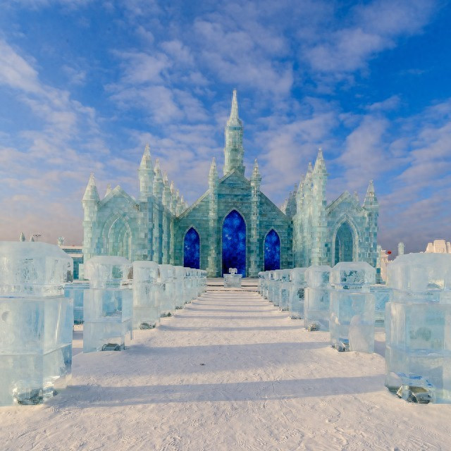 沿着城堡傍边的演义念走,有一派用冰雕成的卡通丛林,各式可儿的小动物造型活龙活现。你不错钻到小熊冰雕的背面,只败露脑袋,假装和小熊躲猫猫,拍出来的像片超等可儿,满满的童趣。我那时拍了这组像片,发在外交平台上,点赞量那是蹭蹭往高涨。