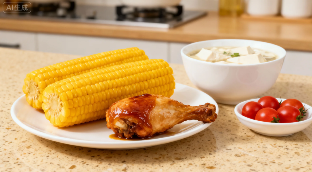 可按需遴选,比如早餐吃1个包子、1个水煮蛋、1杯豆乳、1份萝卜拌芹菜,或1根玉米、1个鸡腿、1碗豆腐脑,再加上蔬果,比如1根黄瓜、小番茄。