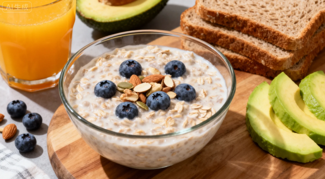 主食可尝试全麦面包、纯燕麦片,少吃起酥面包、生果麦片、薯条、炸薯饼等,卵白质可遴选煎三文鱼、鸡胸肉、牛排等,外加一杯牛奶或酸奶。